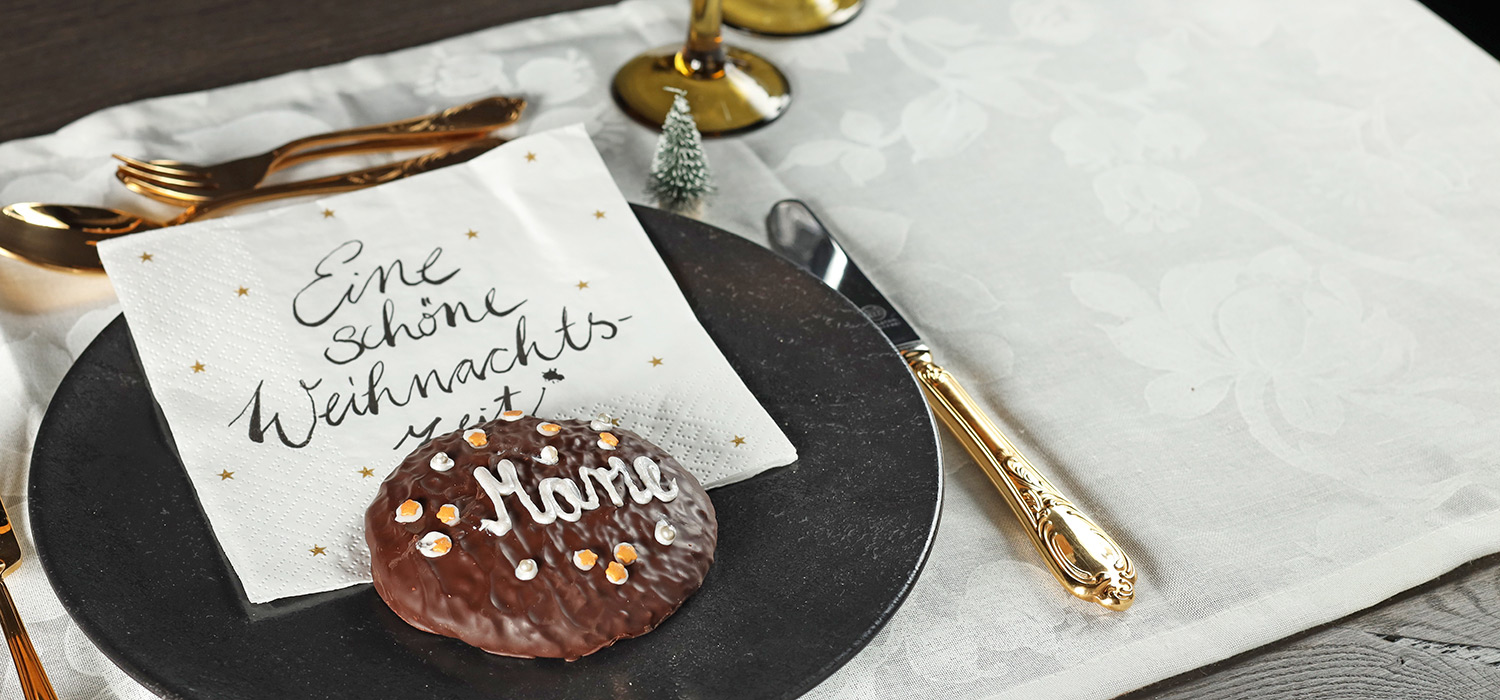Ein Lebkuchen duftet und schmeckt nicht nur wunderbar weihnachtlich, er macht auch als Namensschild auf dem Teller eine gute Figur...